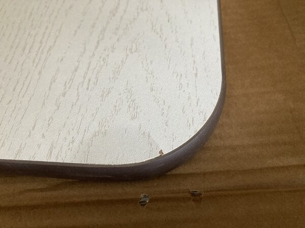 Damaged edge on arrival due to inadequate packaging (thin foam wrap + flimsy box). Tabletop itself is nice and a great price—would recommend with caution and immediate inspection on delivery.