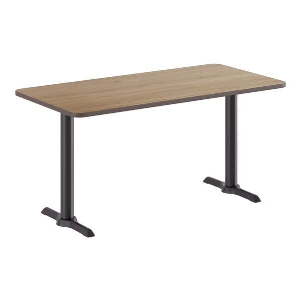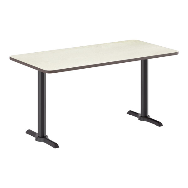 Take the guess-work out of selecting compatible table tops and bases with this 30" x 60" reversible white birch / ash table top and cross cast iron base plate. This table gives your establishment a modern look and provides your guests a stable place to comfortably enjoy their drinks and food! From the strong, sturdy cast iron base plate and spider, to the sleek black column and durable laminated table top, this table is an all-in-one addition to any establishment. Plus, with a contemporary rectangular shape, it's sure to add aesthetic appeal to any establishment, setting itself apart from traditional square or circular table layouts. The 30" x 60" design comfortably seats up to 4 guests without taking up too much room, making it the perfect choice for any restaurant, pizza shop, or cafeteria!