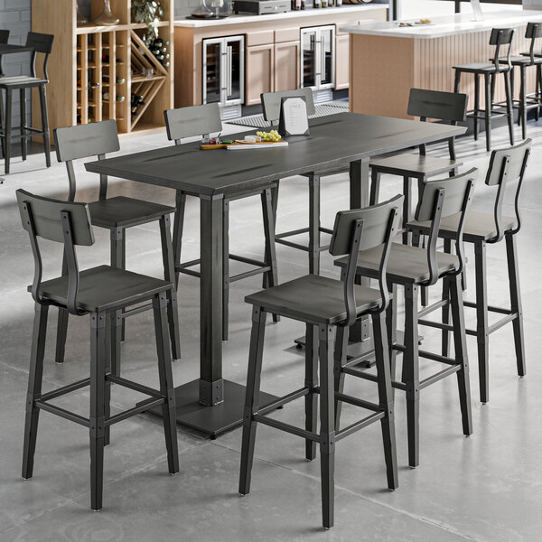 - Lancaster Table & Seating Industrial 30" x 60" Slate Gray Finish Solid Wood Live Edge Bar Height Table with 6 Bar StoolsRated 5 out of 5 stars