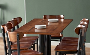 - Contoured, stylish rustic walnut backs on chairs add extra comfort