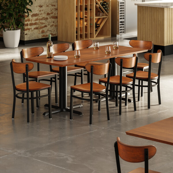 - Lancaster Table & Seating Industrial 30" x 72" Rustic Walnut Finish Solid Wood Live Edge Standard Height Table with 8 ChairsRated 4.2 out of 5 stars