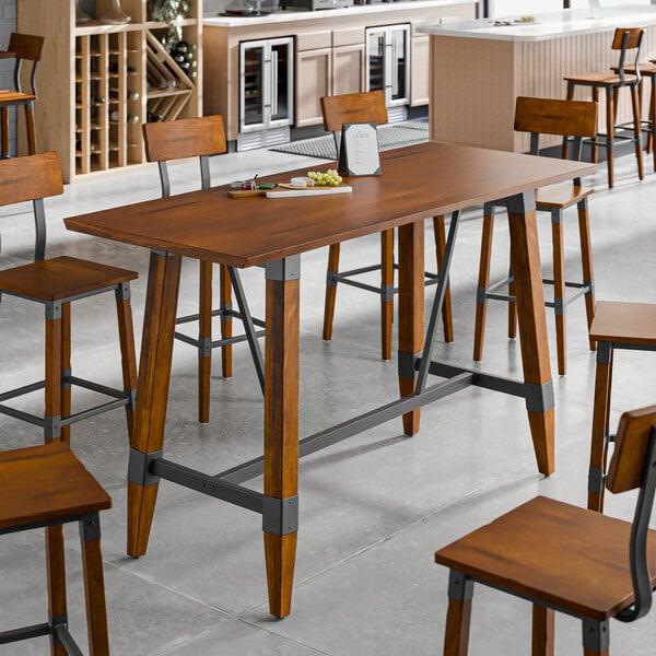 The rustic walnut finish highlights the distinctive woodgrain patterns and gives the table a unique aesthetic that can't be duplicated. Pair this table with Lancaster Table & Seating industrial chairs or bar stools (sold separately) to complete your dining area.