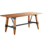 Complete with an attractive table top and compatible table base, this table is the perfect addition to your winery, brewery, or farm-to-table eatery. It combines the natural look of wood with rugged metal accents to add a rustic element with contemporary flair to your establishment.