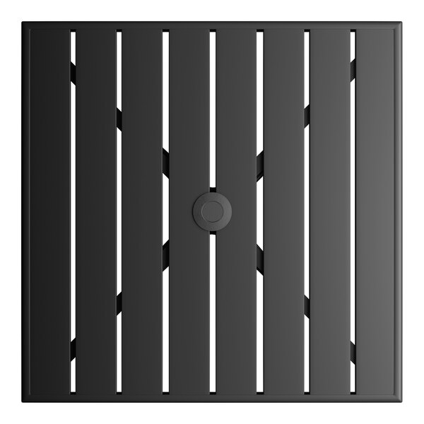 Lancaster Table & Seating 32" x 32" Black Powder-Coated Aluminum Dining Height Outdoor Table with Umbrella Hole