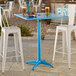 Lancaster Table & Seating 32" x 32" Blue Powder-Coated Aluminum Bar Height Outdoor Table with Umbrella Hole