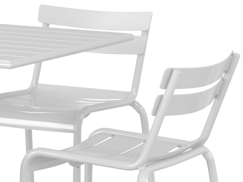The smooth surfaces of the table and chairs feature a bright white color that's sure to induce a lively atmosphere and complement the warm summer sky. Thanks to its UV-resistant finish, the color won't fade over time when left in the sun for longer periods.