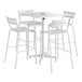 Lancaster Table & Seating 32" x 32" White Powder-Coated Aluminum Bar Height Outdoor Table with Umbrella Hole and 4 Barstools