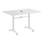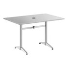 This table's lightweight with a pedestal base and adjustable feet so that you can easily move it around your outdoor setting for the best possible view. Plus, it features a built-in umbrella hole so you can pair the table with a compatible umbrella (sold separately) to add shade at your restaurant or cafe. For your convenience, this table is easy to assemble with its included hardware so you can quickly set it up in its proper space and let your guests enjoy.
