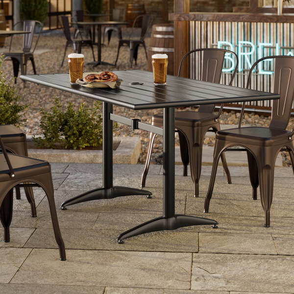 Actually, I can't believe that I haven't yet written a review for this table. I bought it last year and we love it! We built our home 6 years ago, and we have a small 12'x12' deck off our dining room. With space limited, we need a table that's not large, but still can accommodate 6-8. The first table I bought was almost exactly the same dimensions as this, but it was wood, and didn't last. It was very difficult to replace that size, but luckily, after a long internet search, I found this one, which is heavy and sturdy and ought to last forever! Thank you, Webstraurant Store, for another great product!