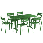 Lancaster Table & Seating 32" x 60" Silver Powder-Coated Aluminum Dining Height Outdoor Table with Umbrella Hole and 6 Side Chairs