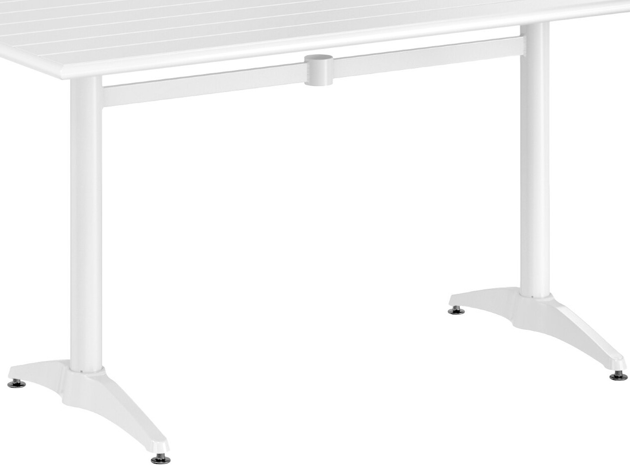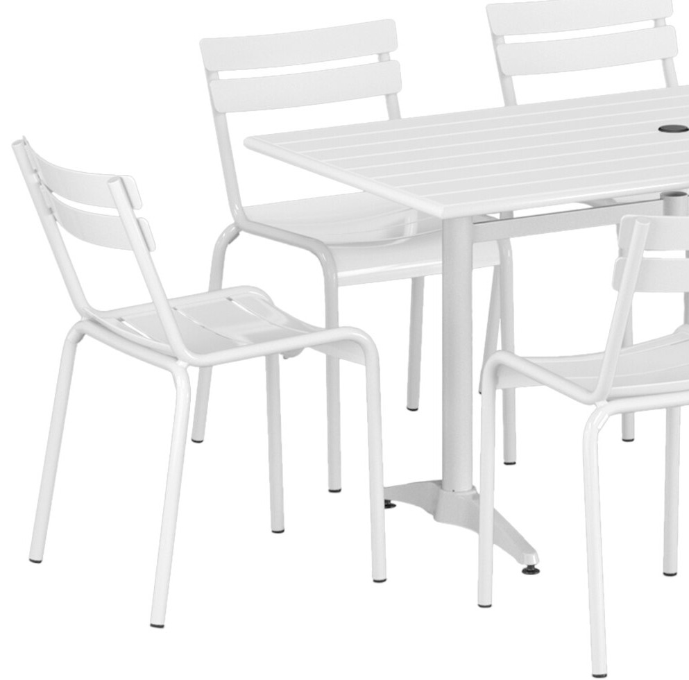 A built-in umbrella hole allows the table to be paired with a compatible umbrella (sold separately) to add shade at your restaurant or cafe.