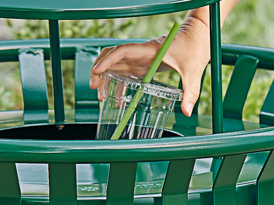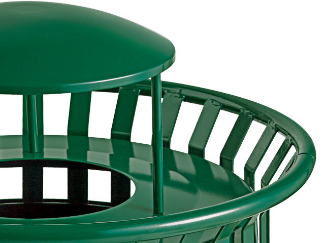 - Convenient open lid design with rain bonnet cover allows for easy, one-handed waste disposal