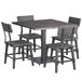 Lancaster Table & Seating Industrial 36" Square Slate Gray Finish Solid Wood Live Edge Standard Height Table with 4 Chairs