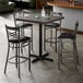 From the strong, sturdy cast iron base plate and spider, to the sleek black column and durable wood top and the four cross back bar stools, this dining set is an all-in-one addition to any establishment. The top is made from farmed wood, and it also provides your establishment with a distinct aesthetic that can't be duplicated. Whether you're using it in a restaurant, pub, or cafe, if you're looking for a tabletop that spotlights the beauty of nature while also focusing on an elegant dining experience, this table is the best of both worlds!