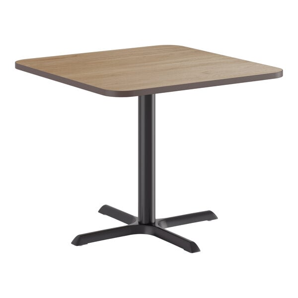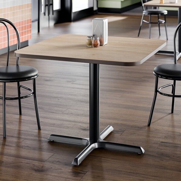 Take the guess-work out of selecting compatible table tops and bases with this 36" x 36" reversible white birch / ash table top and cross base plate! This table gives your establishment a modern look and provides your guests a stable place to comfortably enjoy their drinks and food! From the strong, sturdy cast iron base plate and spider, to the sleek black column and durable laminated table top, this table is an all-in-one addition to any establishment. Plus, with a contemporary square shape, it's sure to add aesthetic appeal to any establishment. The compact 36" x 36" design comfortably seats 2 to 4 guests without taking up too much room, making it the perfect choice for any restaurant, pizza shop, or cafeteria!