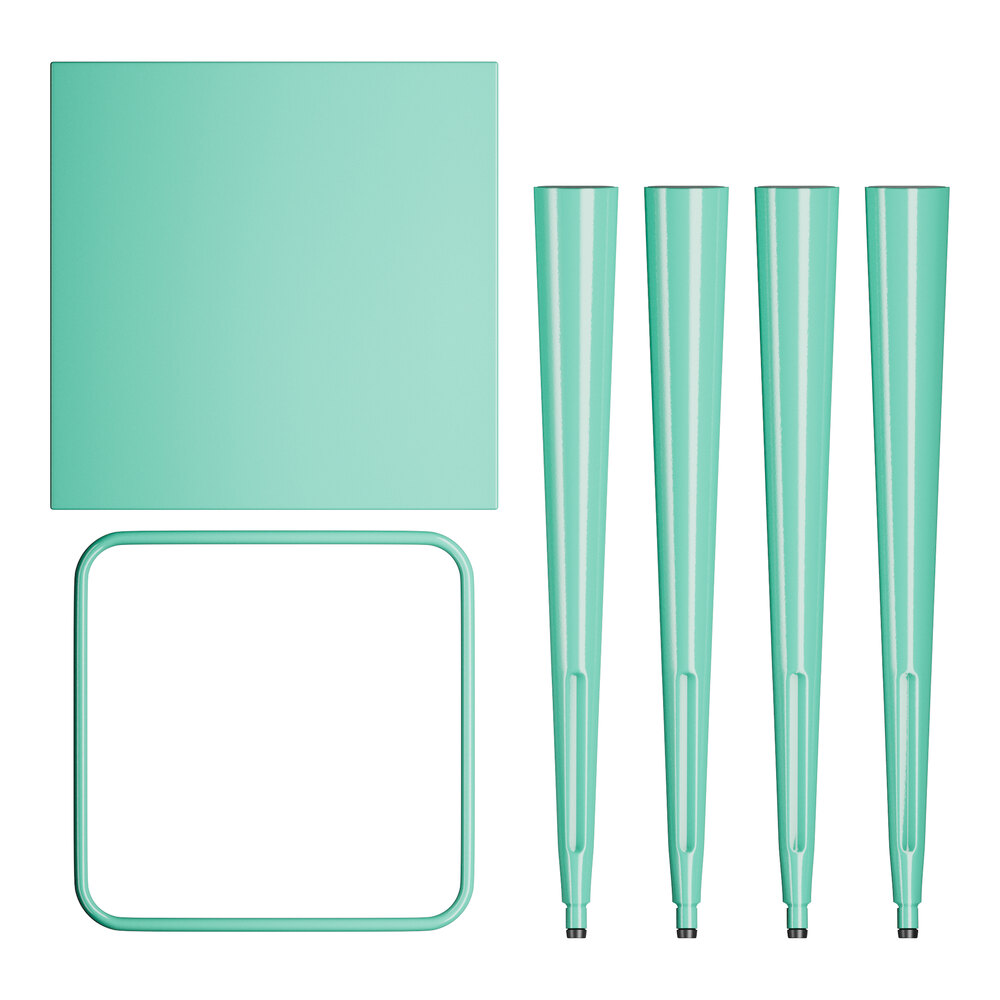 This set is made of durable steel and coated to withstand years of use. The vibrant aquamarine color adds a fun, colorful touch to any setting and is sure to be a contemporary design choice that guests love. Comfortable and stylish, this strong yet lightweight set is an excellent choice for your indoor or outdoor dining area. To save you money on shipping costs, the table ships unassembled and the stools ship with the backrests detached. All required assembly hardware is included so you can quickly set it up in its proper space and let your guests enjoy!