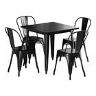 This set is made of durable steel and coated to withstand years of use. The onyx-black color adds a sleek, modern touch to any setting and is sure to be a contemporary design choice that guests love. Comfortable and stylish, this strong yet lightweight set is an excellent choice for your indoor or outdoor dining area. To save you money on shipping costs, the table ships unassembled. All required assembly hardware is included so you can quickly set it up in its proper space and let your guests enjoy! The chairs ship fully assembled.