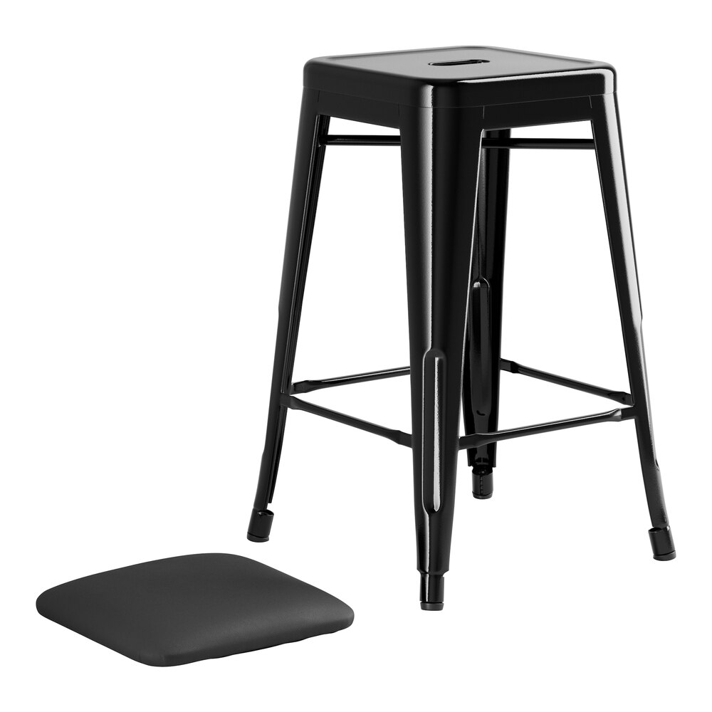 This stool is made of durable steel and coated to withstand years of use. The onyx-black color adds a sleek, modern touch to any setting and is sure to be a contemporary design choice that guests love. Comfortable and stylish, this strong yet lightweight stool is an excellent choice for your indoor dining area. To save time and hassle, the counter height stool ships assembled. The cushion ships detached from the stool.