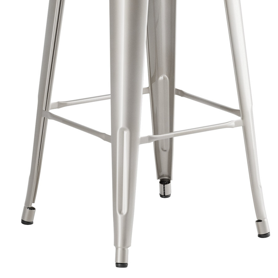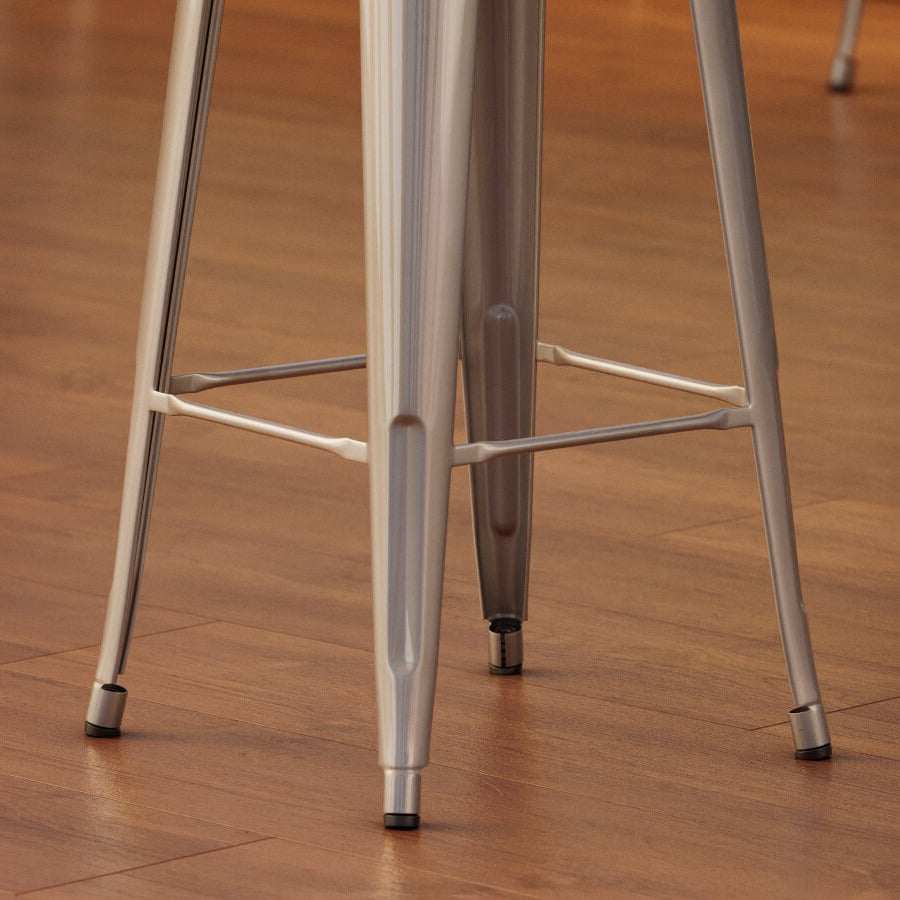 Ready to withstand daily indoor use, this stool is constructed of durable steel. It also has a clear coat for a shiny, industrial look. The frame is reinforced with additional under-seat cross bracing to provide strength and stability without adding extra bulk or weight to this sleek design.