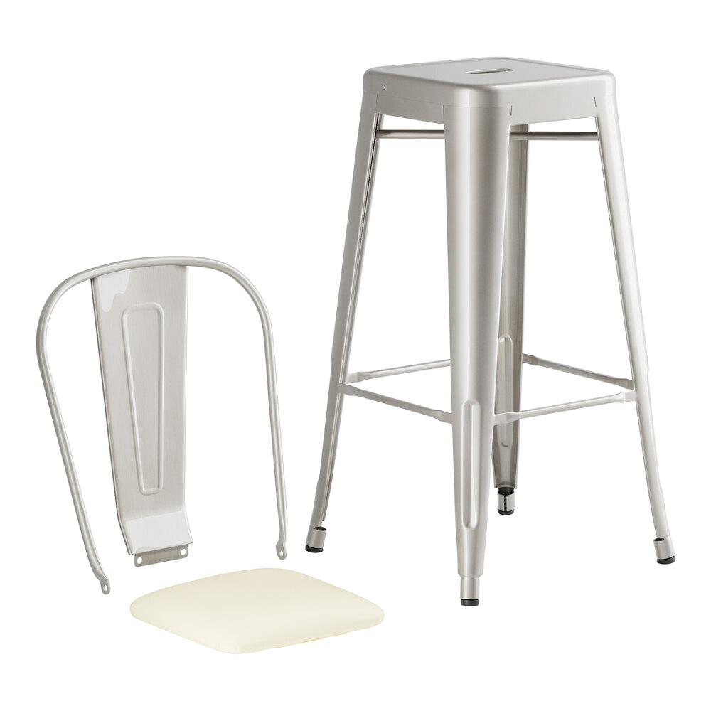 Lancaster Table & Seating Alloy Silver Indoor Cafe Barstool with White Vinyl Cushion