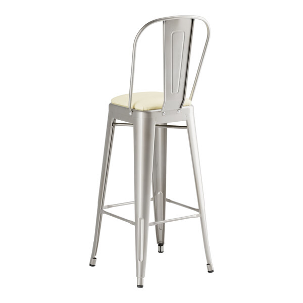 Take your modern restaurant, cafe, or bistro to the next level with this Lancaster Table & Seating Alloy clear coat indoor cafe barstool with white vinyl cushion!
