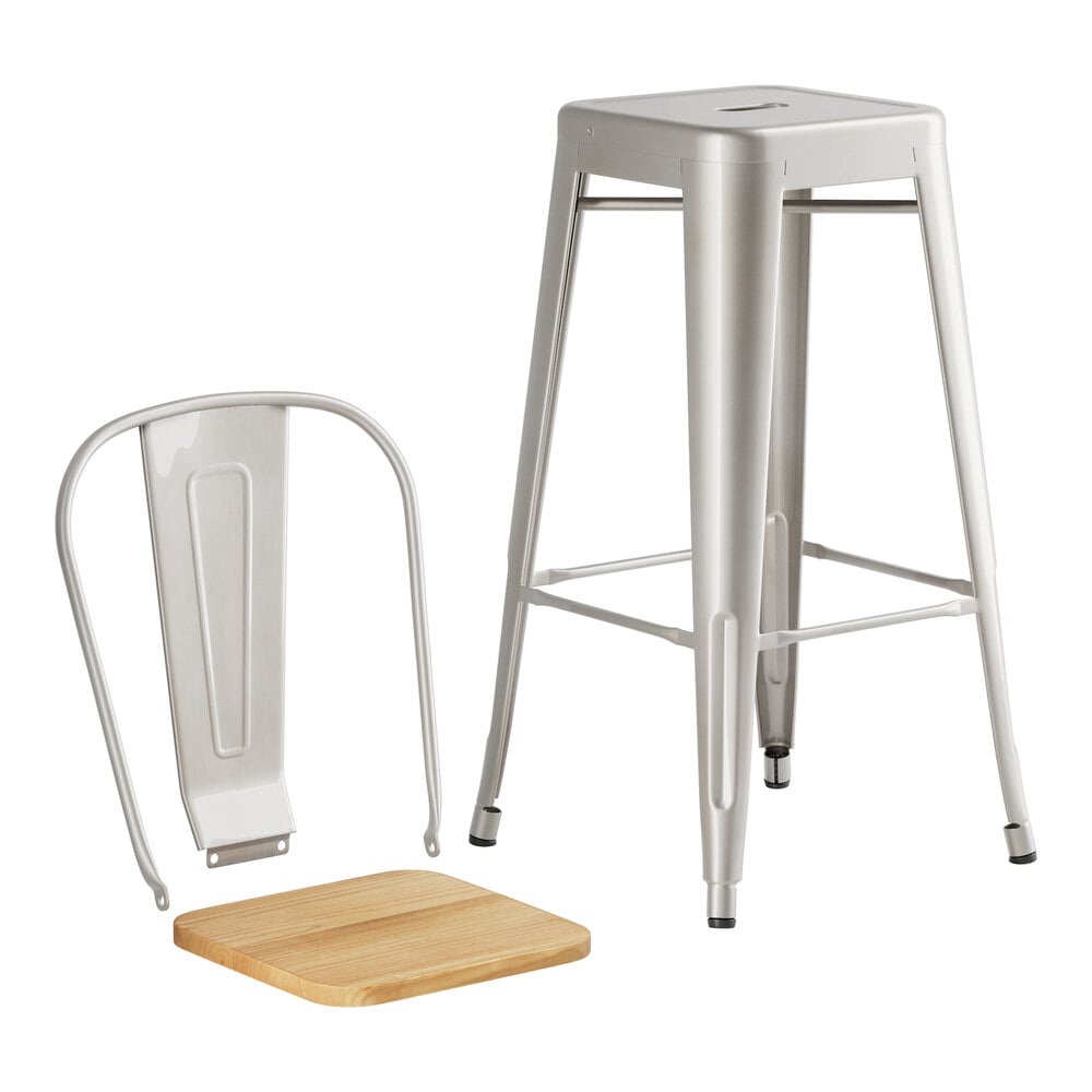 Lancaster Table & Seating Alloy Silver Indoor Cafe Barstool with Natural Wood Seat