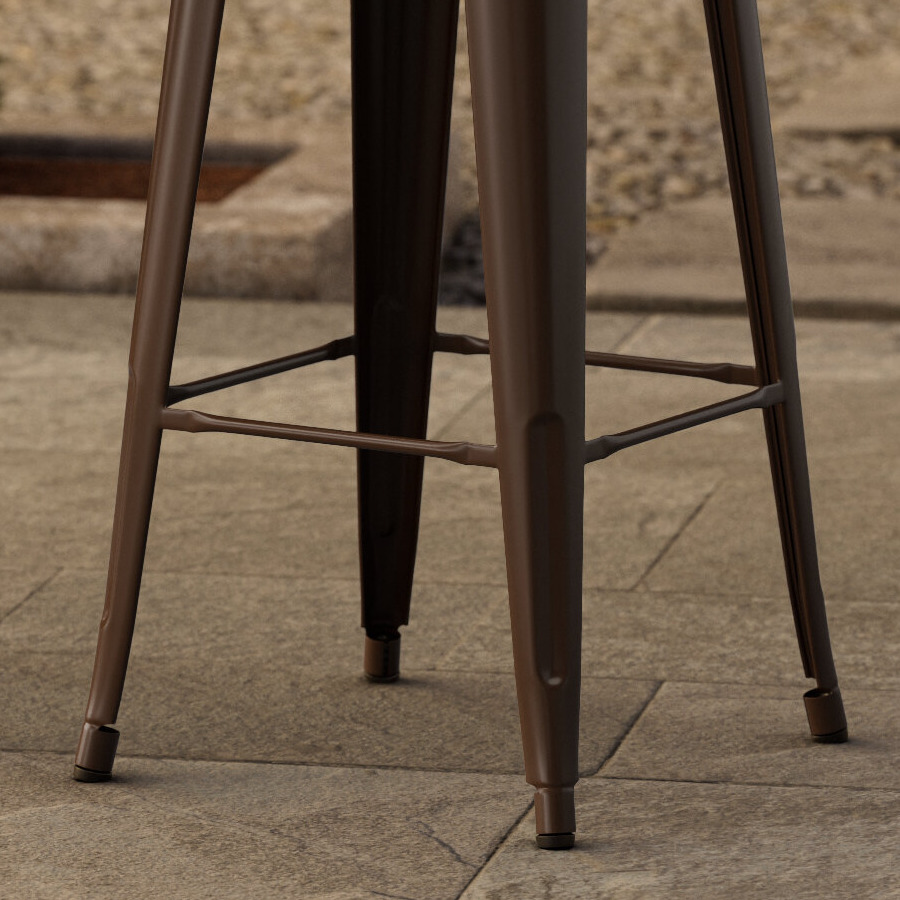 Ready to withstand daily outdoor use, this stool is constructed of durable steel. It's then powder coated for rust and corrosion resistance as well as extra protection against everyday wear and tear. The frame is reinforced with additional under-seat cross bracing to provide strength and stability without adding extra bulk or weight to this sleek design.