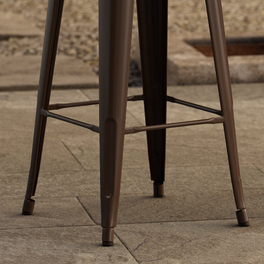 Ready to withstand daily outdoor use, this stool is constructed of durable steel. It's then powder coated for rust and corrosion resistance as well as extra protection against everyday wear and tear. The frame is reinforced with additional under-seat cross bracing to provide strength and stability without adding extra bulk or weight to this sleek design.