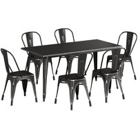This chair is made of durable steel and coated to withstand years of use. The distressed onyx-black color adds a sleek, modern touch to any setting and is sure to be a contemporary design choice that guests love. Comfortable and stylish, this strong yet lightweight chair is an excellent choice for your indoor or outdoor dining area. To save time and hassle, this chair ships fully assembled.