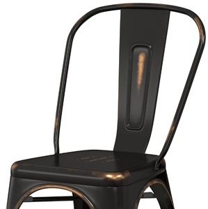 This chair is made of durable steel and coated to withstand years of use. The distressed copper color adds a sleek, modern touch to any setting and is sure to be a contemporary design choice that guests love. Comfortable and stylish, this strong yet lightweight chair is an excellent choice for your indoor or outdoor dining area. To save time and hassle, this chair ships fully assembled.