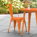 This chair is made of durable steel and coated to withstand years of use. The vibrant amber-orange color adds a fun, colorful touch to any setting and is sure to be a contemporary design choice that guests love. Comfortable and stylish, this strong yet lightweight chair is an excellent choice for your indoor or outdoor dining area. To save time and hassle, this chair ships fully assembled.