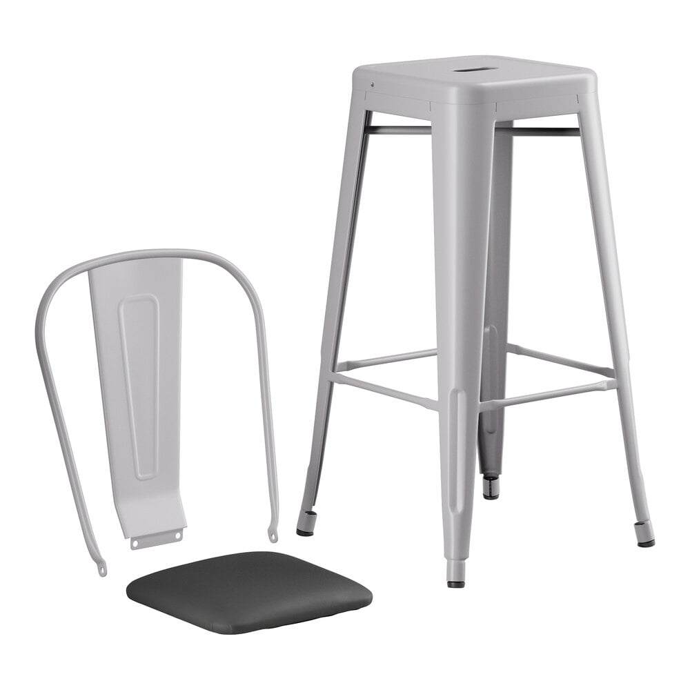 This stool is made of durable steel and coated to withstand years of use. The gray color adds a sleek, modern touch to any setting and is sure to be a contemporary design choice that guests love. Comfortable and stylish, this strong yet lightweight stool is an excellent choice for your indoor dining area. To save you money on shipping costs, this barstool ships with the backrest and cushion detached from the stool.