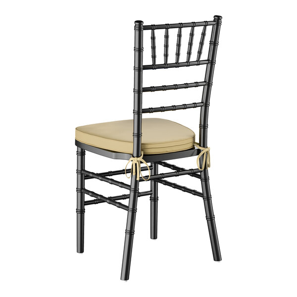Add elegance to your event with this Lancaster Table & Seating black Chiavari chair with gold cushion!