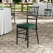 Add elegance to your event with this Lancaster Table & Seating black Chiavari chair with green cushion!