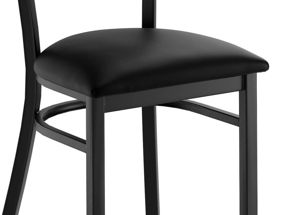 The 2 1/2" thick black vinyl padded seat provides exceptional comfort for your guests, and it's also durable and easy to clean! It is made with fire-retardant foam for added safety.