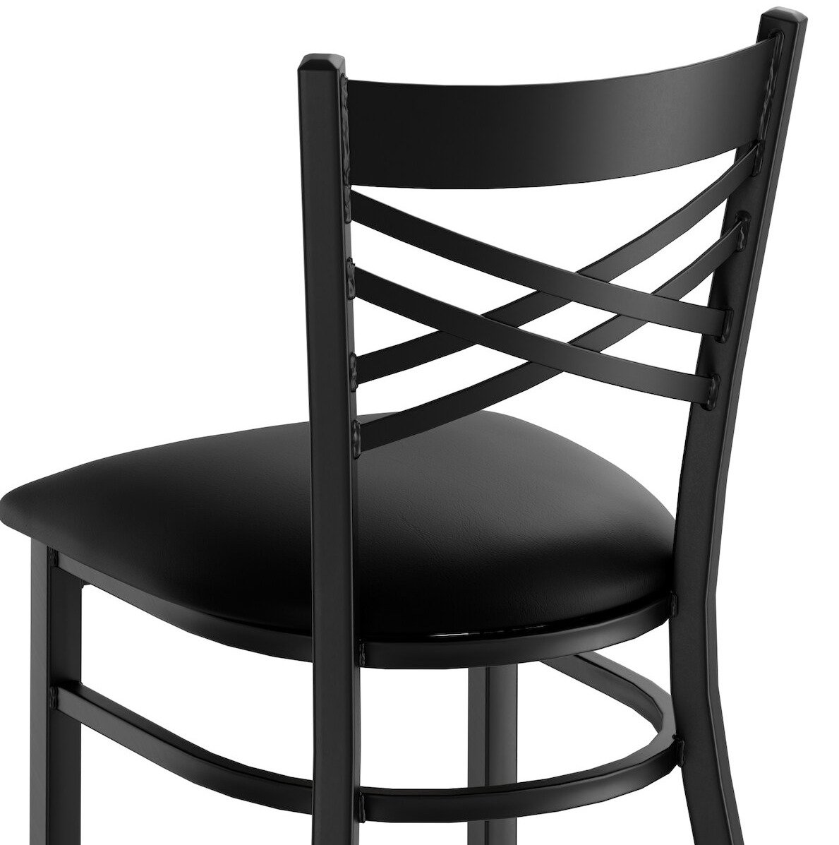 Seat your guests in comfort and style with this Lancaster Table & Seating black finish cross back chair with 2 1/2" black vinyl padded seat.