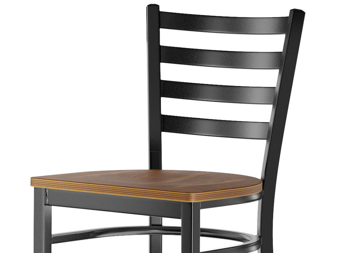This bar stool's sturdy wood seat with a sleek vintage finish combines with its contemporary ladder back steel frame to instill a modern look in any location. Plus, since this bar stool's back is contoured for a customer's back, it will provide comfort while maintaining a distinct appearance.