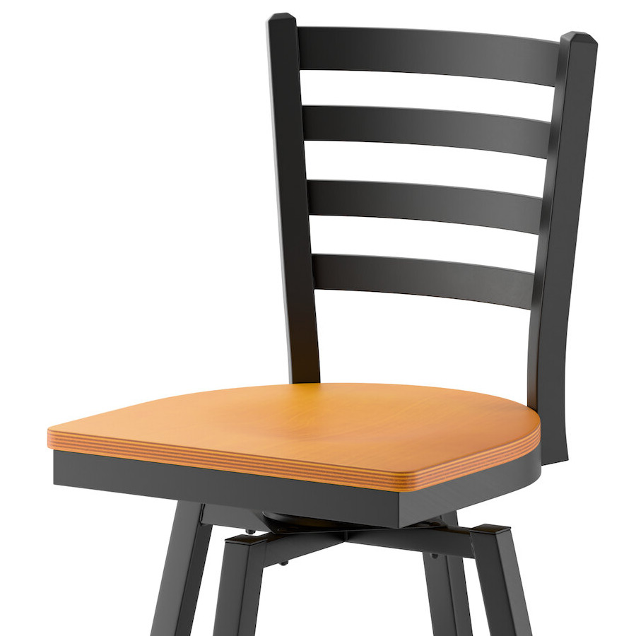 This bar stool's wood seat combines with its contemporary ladder back steel frame to instill a modern look in any location. Plus, since this bar stool's back is contoured, it will provide comfort for the customer while maintaining a distinct appearance.