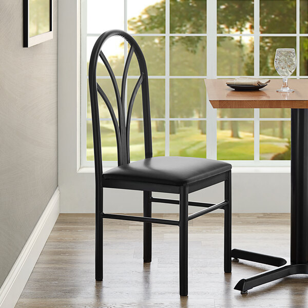 This black vinyl seat directly replaces the seat on your existing Lancaster Table & Seating spoke back chair or bar stool. It provides guests with a comfortable place to sit during their meals.
