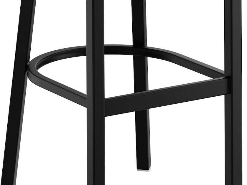 The bar stool's built-in footrest gives customers a place to rest their legs.