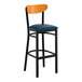 This bar stool's wooden Boomerang back and padded seat combine with its modern steel frame to instill a unique look in any location. Plus, since this bar stool's back is contoured for a customer's back, it will provide comfort while maintaining a distinct appearance.