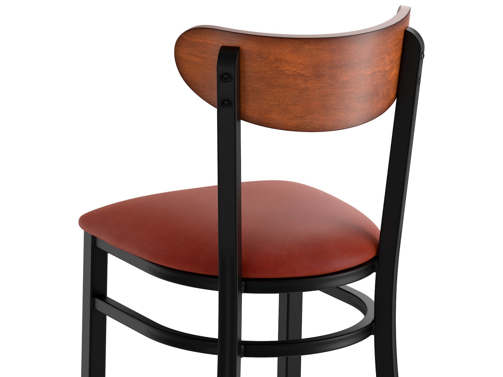 The back of the chair ( Boomerang) it quite comfortable and gives the chair a new modern, yet practical look. Affordable & sturdy. The padded cushion is comfortable, but be aware that after some time the screws do some loose and and the OSB like base doesn't allow for re-screwing/drilling. Our fix to this (as this was our second time purchasing this chairs) was to drill an anchor then insert the screw. (THIS IS ONLY our opinion of how to allow these chairs to last) Our first set of chairs at another location have been used for 6 years and still going strong without major wear and tear. Would buy a again