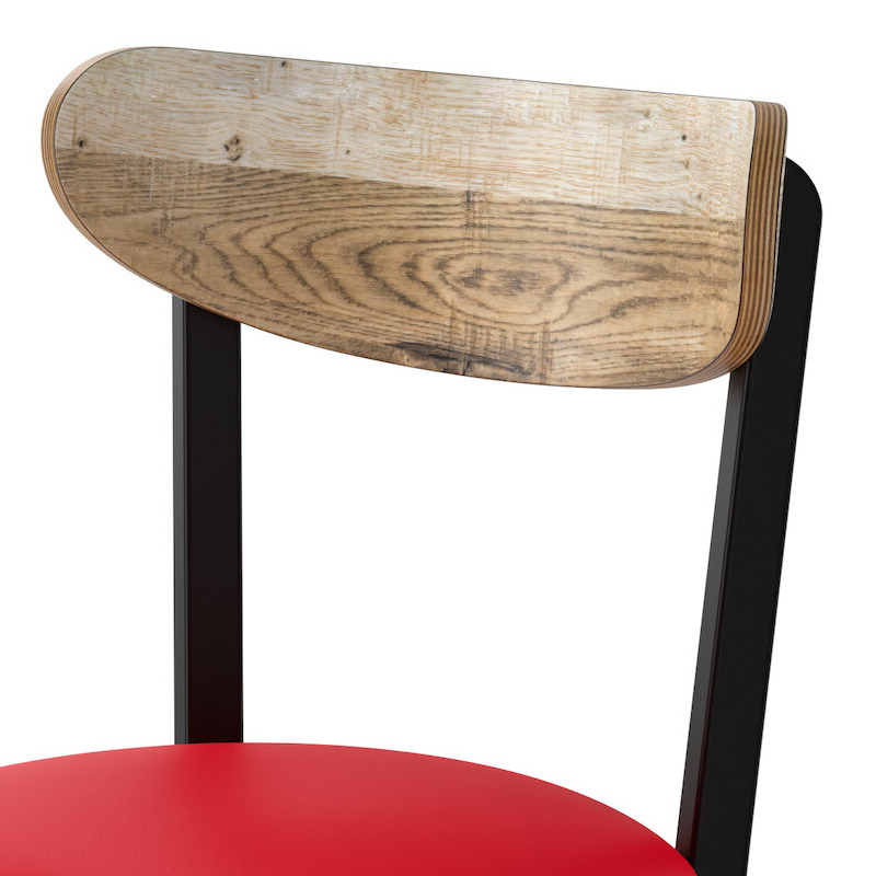 Lancaster Table & Seating Boomerang Black Finish Chair with Red Vinyl Seat and Driftwood Back