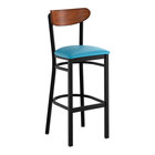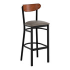 The back of the chair ( Boomerang) it quite comfortable and gives the chair a new modern, yet practical look. Affordable & sturdy. The padded cushion is comfortable, but be aware that after some time the screws do some loose and and the OSB like base doesn't allow for re-screwing/drilling. Our fix to this (as this was our second time purchasing this chairs) was to drill an anchor then insert the screw. (THIS IS ONLY our opinion of how to allow these chairs to last) Our first set of chairs at another location have been used for 6 years and still going strong without major wear and tear. Would buy a again