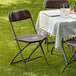 This Lancaster Table & Seating brown textured contoured folding chair is a great addition to any catered event!