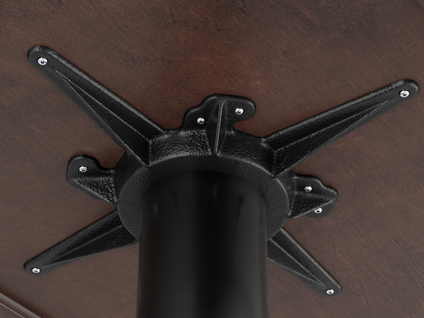 This 22" table base comes with a round base plate, column, spider, leveling feet, and base screws to hold everything together. These components feature a black, powder-coated finish that promotes a professional appearance and matches any colored table top. The base plate and spider are made of heavy cast iron to ensure that your table has a perfectly stable base, while the standard height column is made of painted steel to support the heavy weight of table tops.