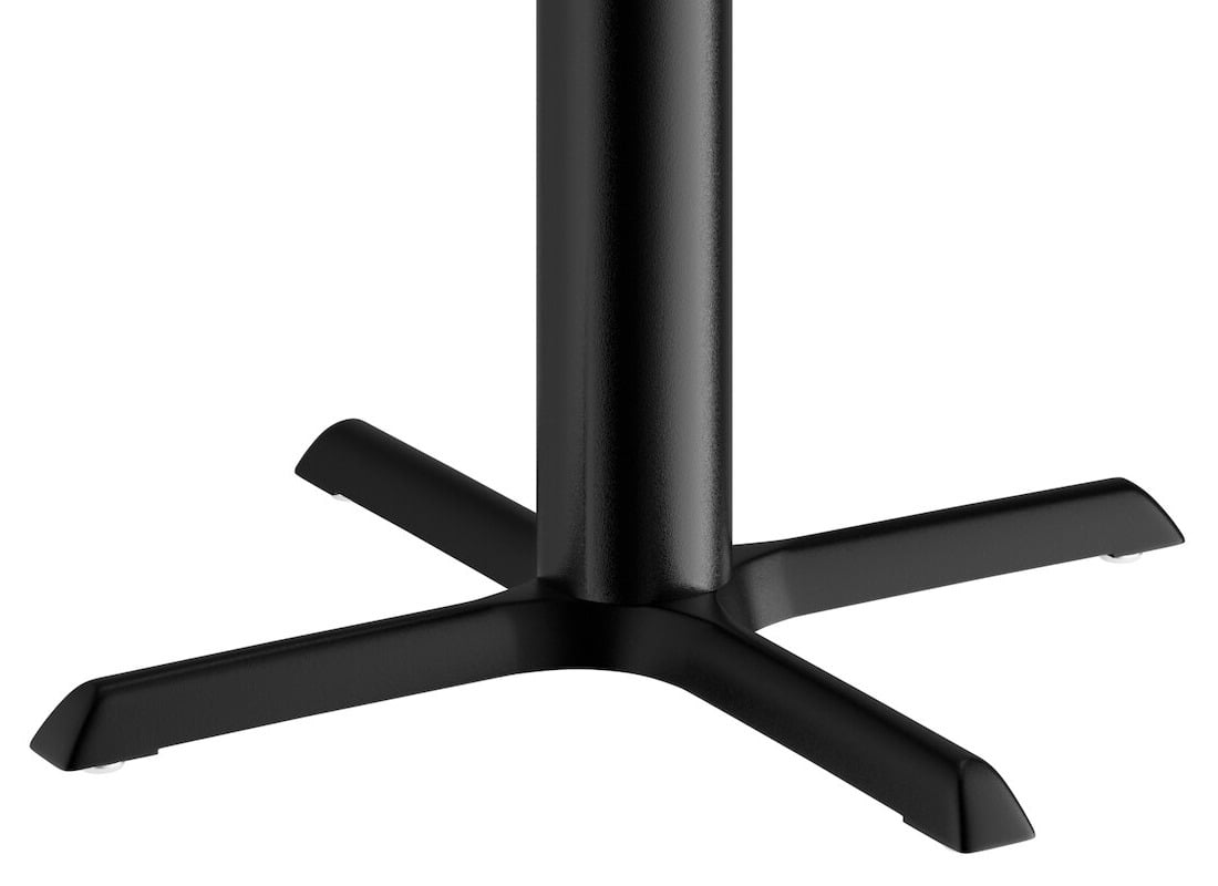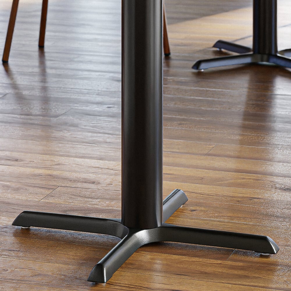 Whether you’re just opening your first restaurant or you're looking to replace the old tables in your restaurant, the Lancaster Table & Seating 30" x 30" black bar height cross table base is the perfect solution to create a stable dining area for your guests. With its 4 1/2" diameter column and non-slip floor glides, this product ensures your table tops are balanced and supported at all times.