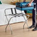 Lancaster Table & Seating's chrome luggage rack with guard is designed to hold suitcases and luggage at your hotel, motel, resort, or convention center. Its solid metal construction creates a stylish modern look while also providing durability and sturdiness. This rack will also keep guests from storing luggage on a chair, couch, bed, or the floor, which frees up more space and makes it easier to clean your rooms.