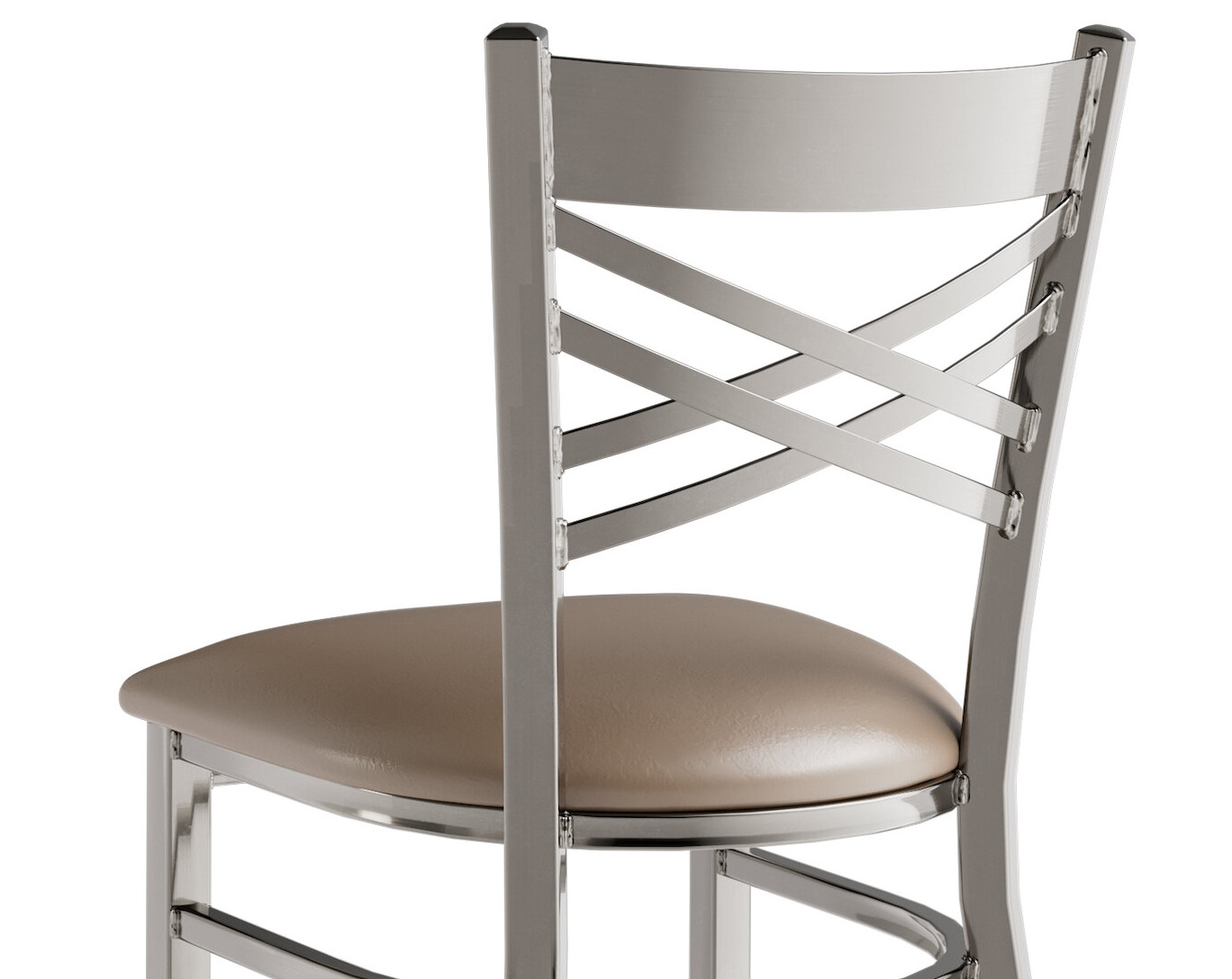 This chair's sleek padded seat combines with its contemporary cross back steel frame to instill a modern look in any location. Plus, since this chair's back is contoured for a customer's back, it will provide comfort while maintaining a distinct appearance.