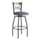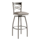 Seat your guests in comfort and style with this Lancaster Table & Seating clear coat finish cross back swivel bar stool with 2 1/2" taupe vinyl padded seat.